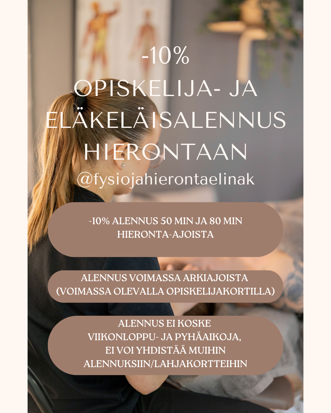 Paranna kehon ja mielen hyvinvointiasi. Varaa aika hierontaan tai fysioterapiaan!